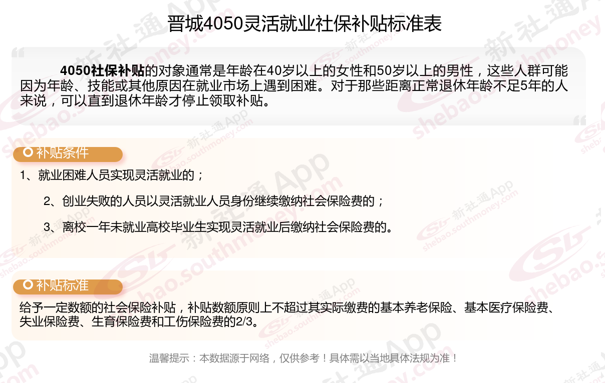 一、2023-2024年晋城4050灵活就业社保补贴标准及条件
