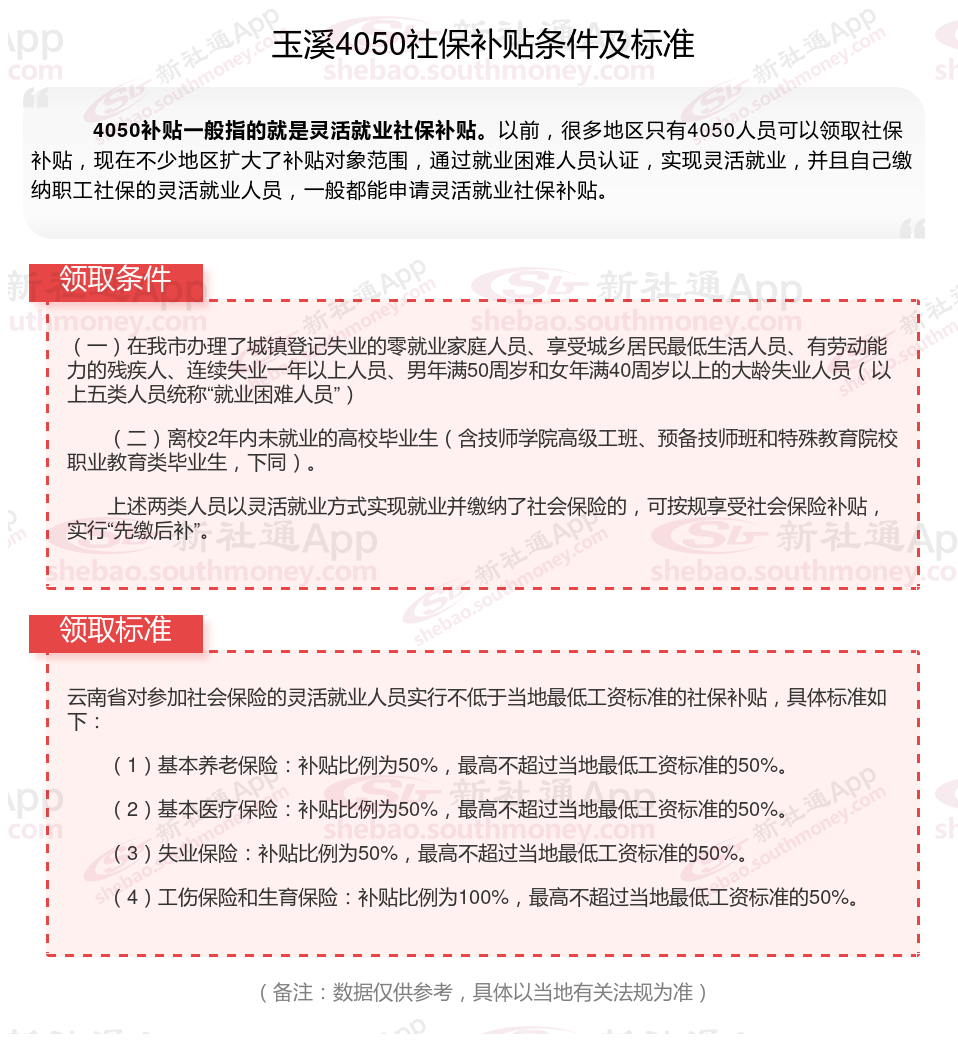 2024玉溪灵活就业4050社保补贴是一项面向特定年龄段的就业困难人群的社会保险补贴。