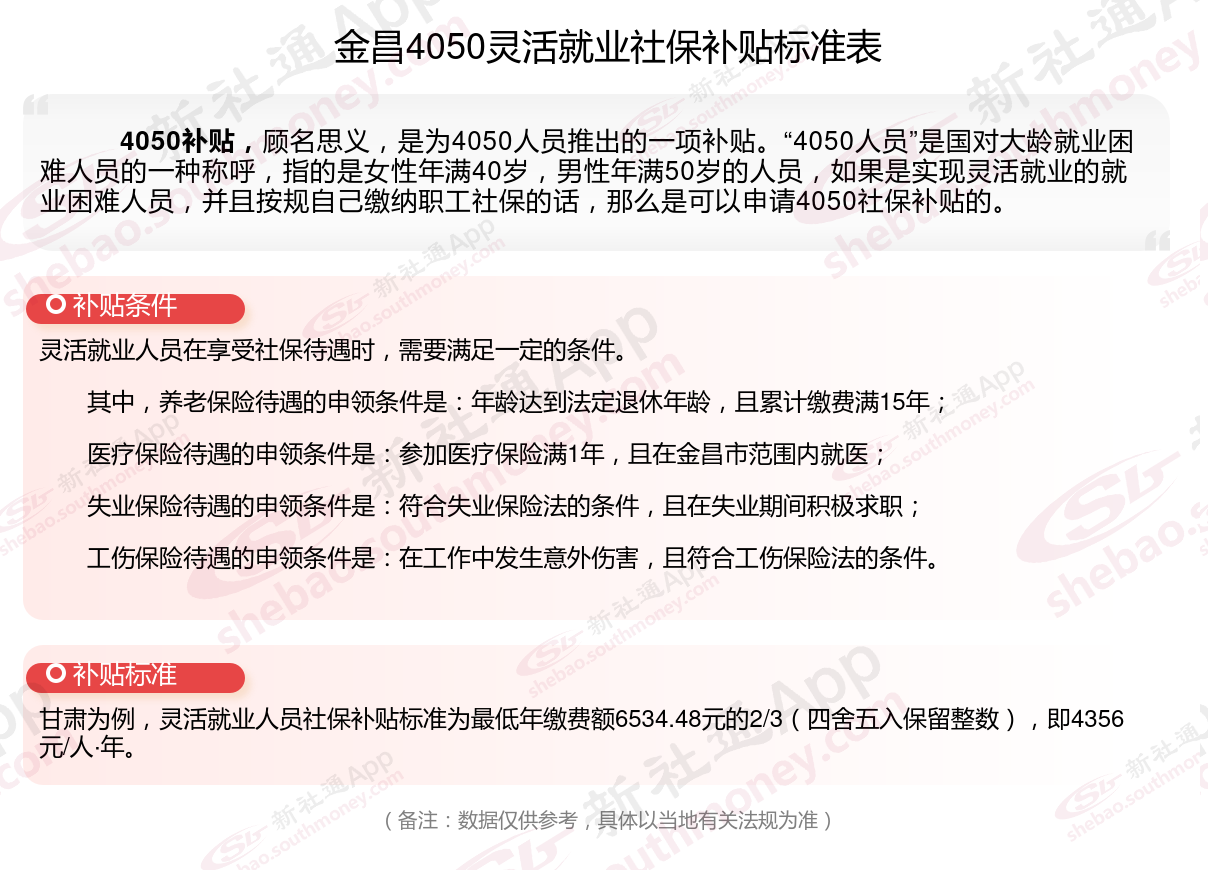 多数地区只有4050人员可以领取社保补贴,现在扩大了补贴对象及范围,通过就业困难人员认证,实现灵活就业,并且自己缴纳职工社保的灵活就业人员,一般都能申请灵活就业社保补贴。那么金昌4050灵活就业社保补贴标准是多少钱?金昌4050社保补贴条件是什么?接下来随新社通APP小编了解一下最新资讯。