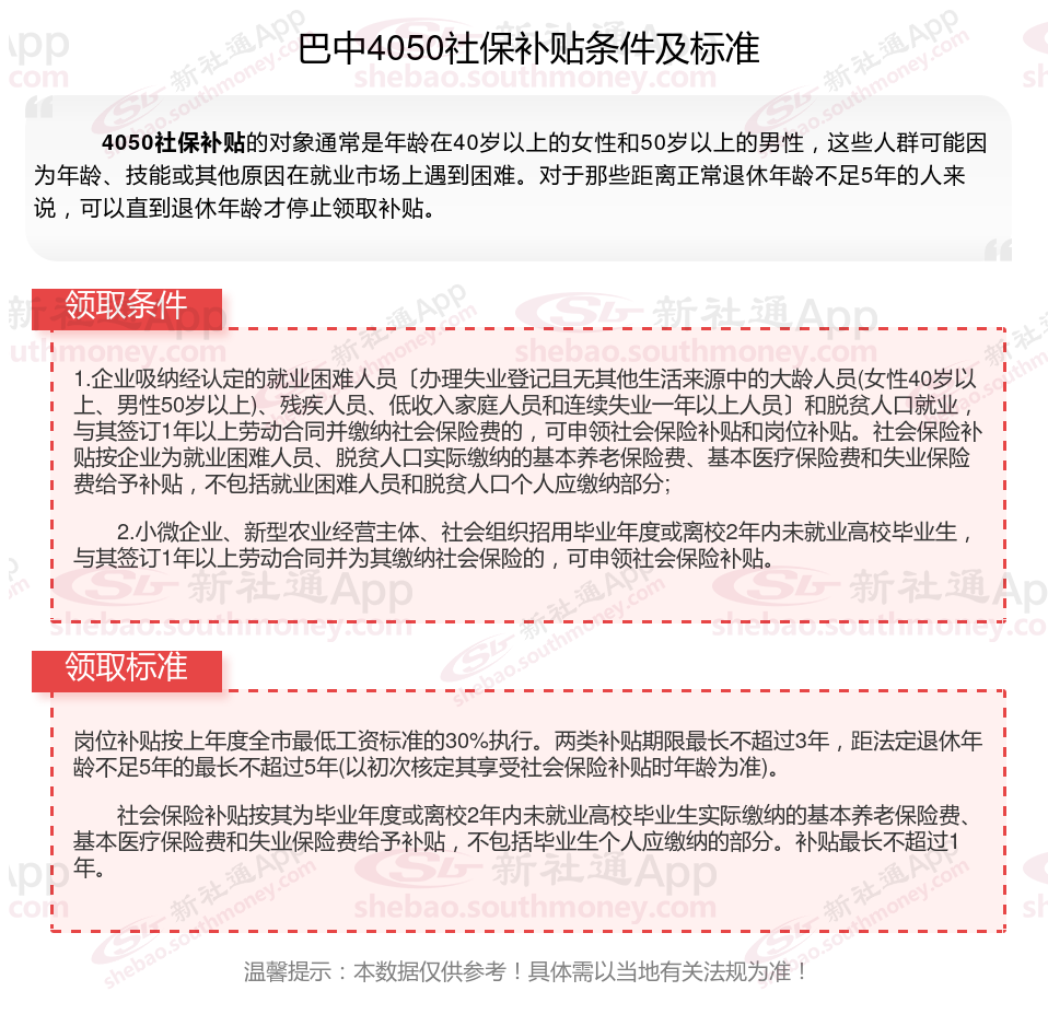 一、巴中4050社保补贴标准及条件2023-2024年