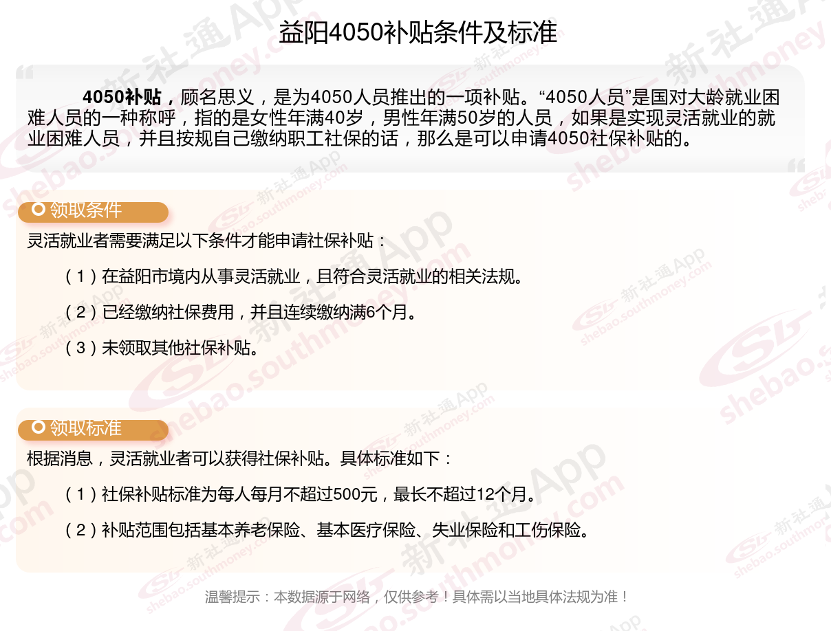 一、2023-2024年益阳4050灵活就业社保补贴标准及条件