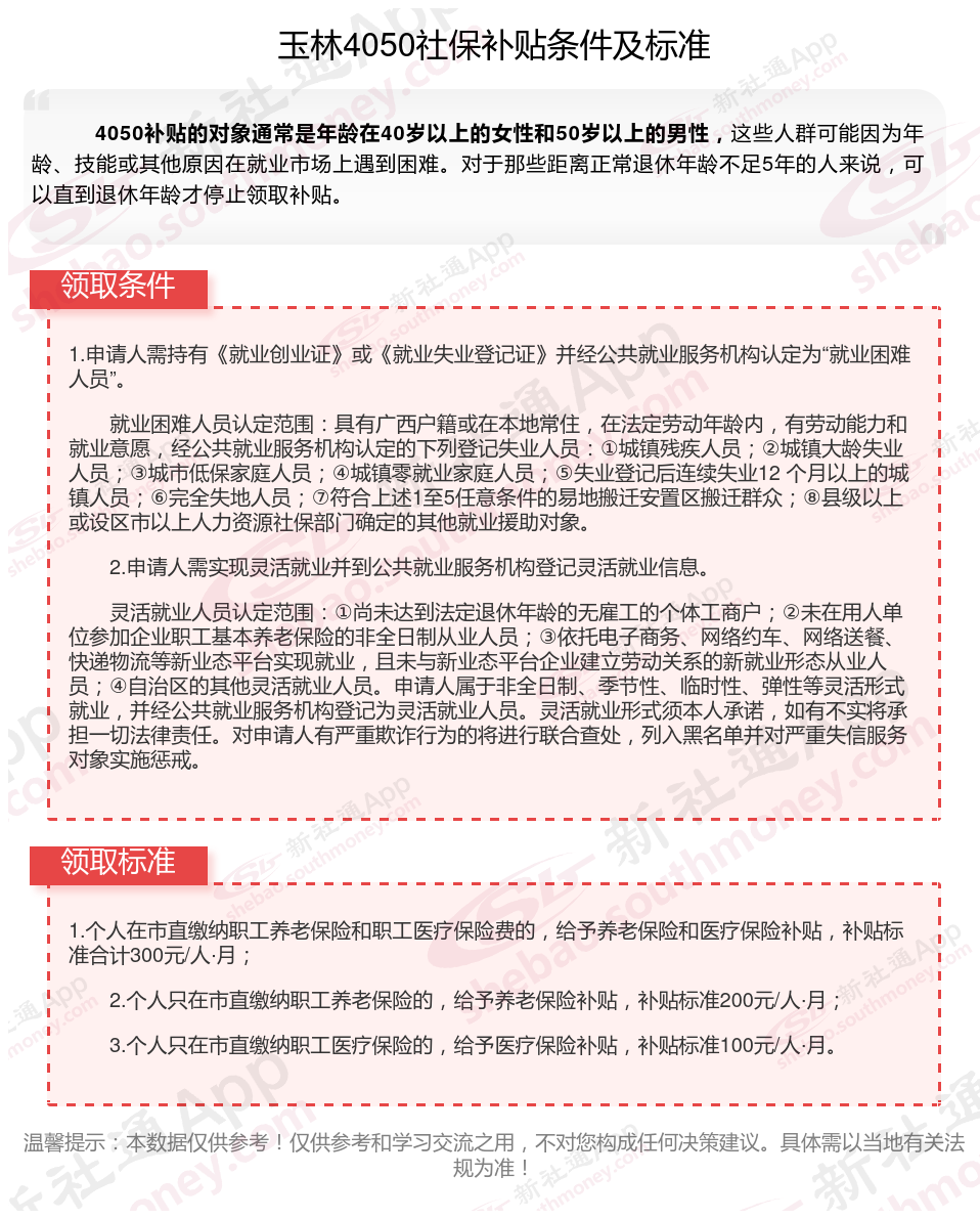 2024玉林灵活就业4050社保补贴是一项面向特定年龄段的就业困难人群的社会保险补贴。