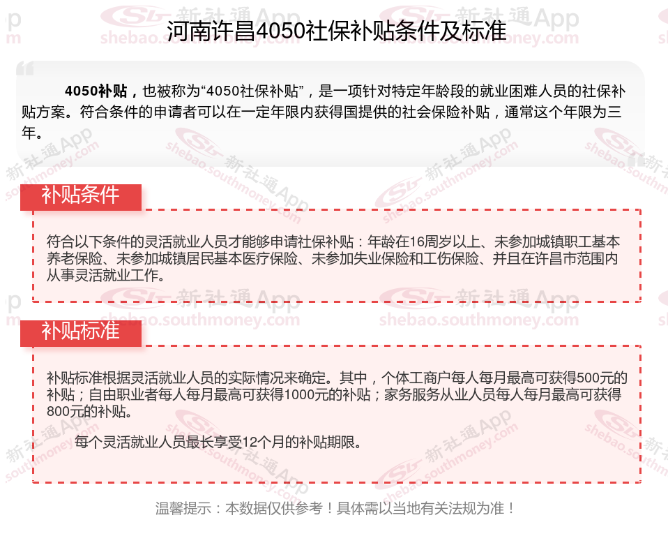 一、2023-2024年河南许昌4050社保补贴标准,最新领取条件来了