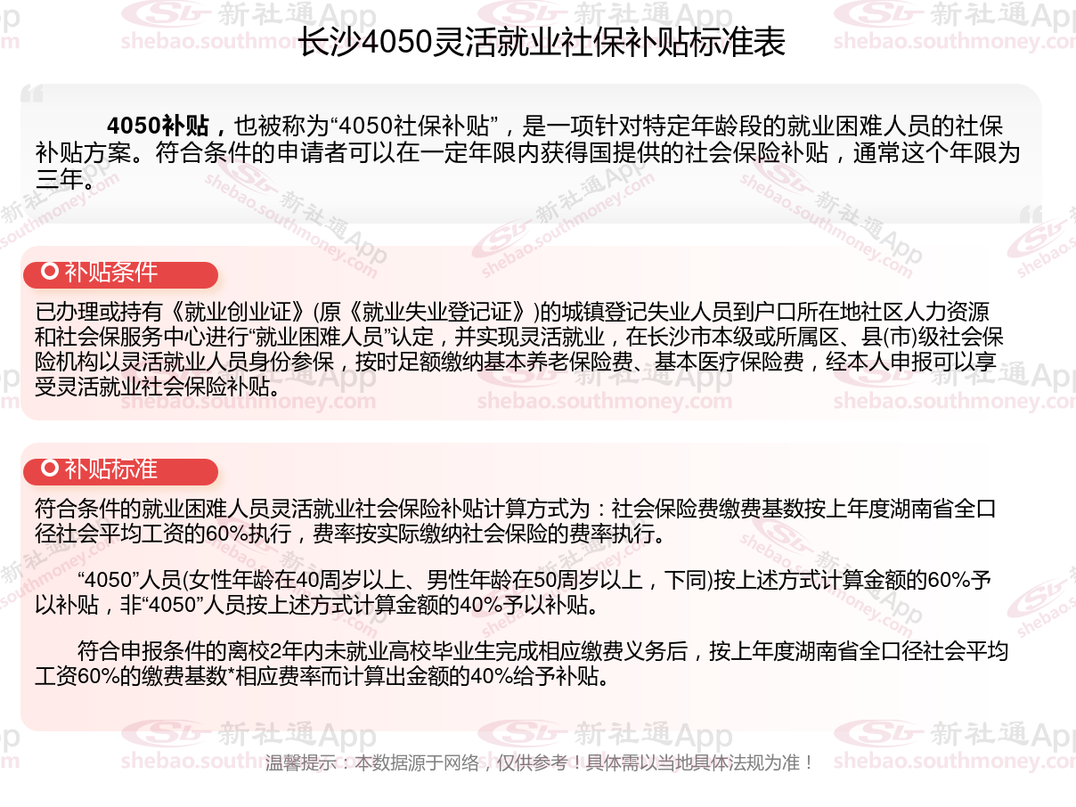 2024长沙灵活就业4050社保补贴是一项面向特定年龄段的就业困难人群的社会保险补贴。