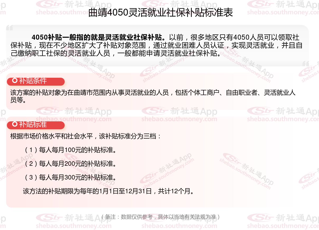 二、曲靖4050社保补贴标准及条件2023-2024年