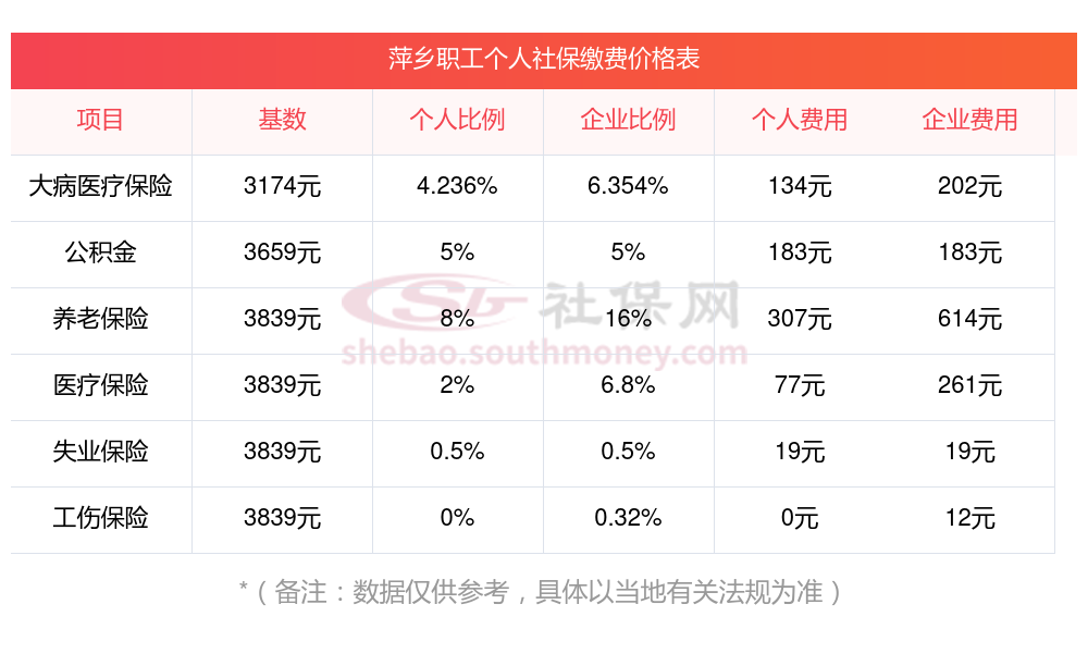 萍乡社保缴纳明细如下: