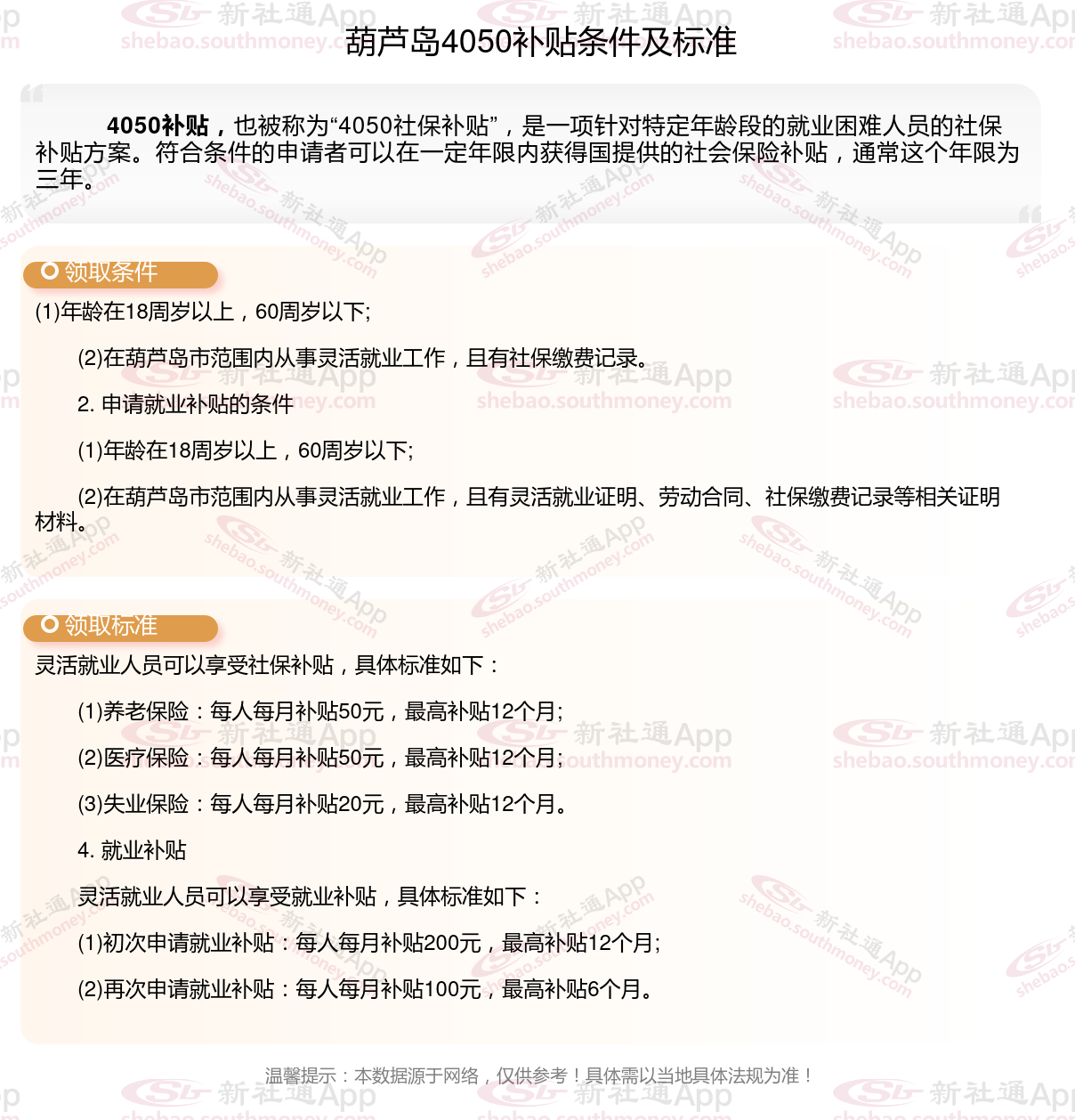 一、葫芦岛4050社保补贴标准及条件2023-2024年