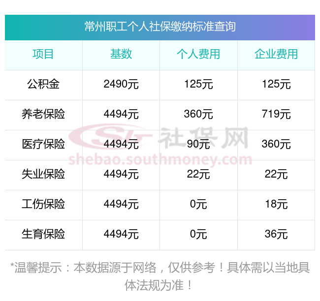 2024年常州社保缴费多少钱?下表是2023-2024年常州社保费用明细参考,如下: