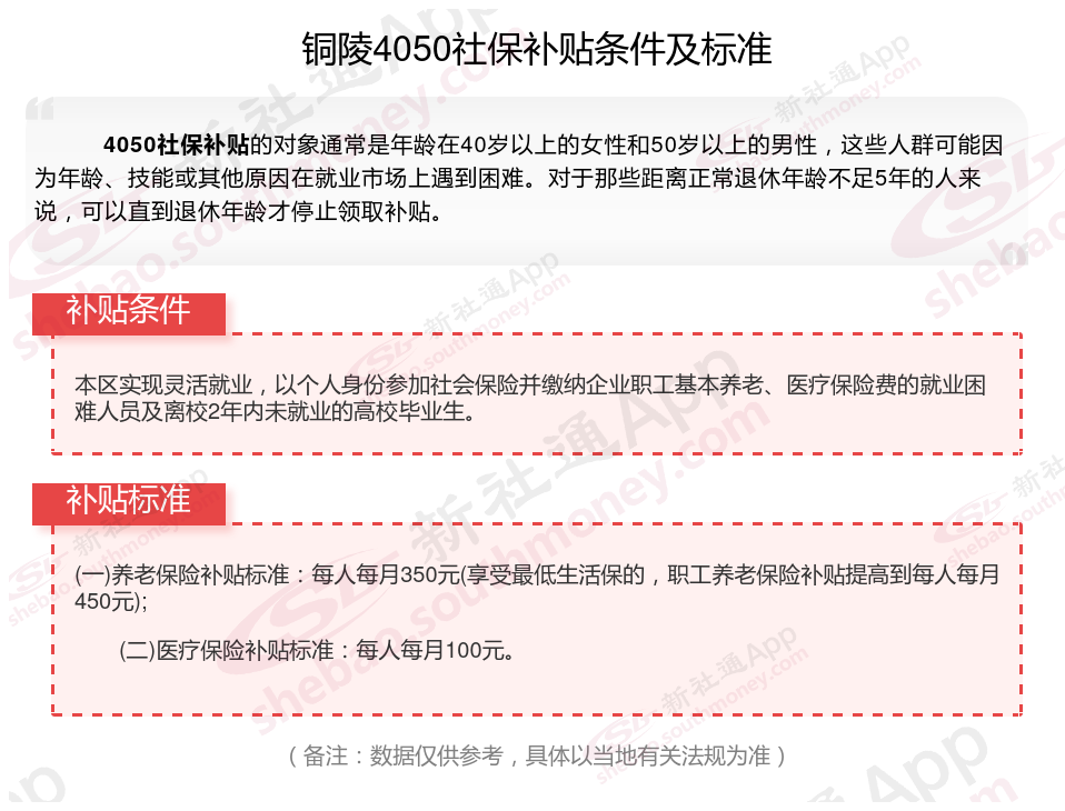 一、铜陵4050社保补贴标准及条件2023-2024年