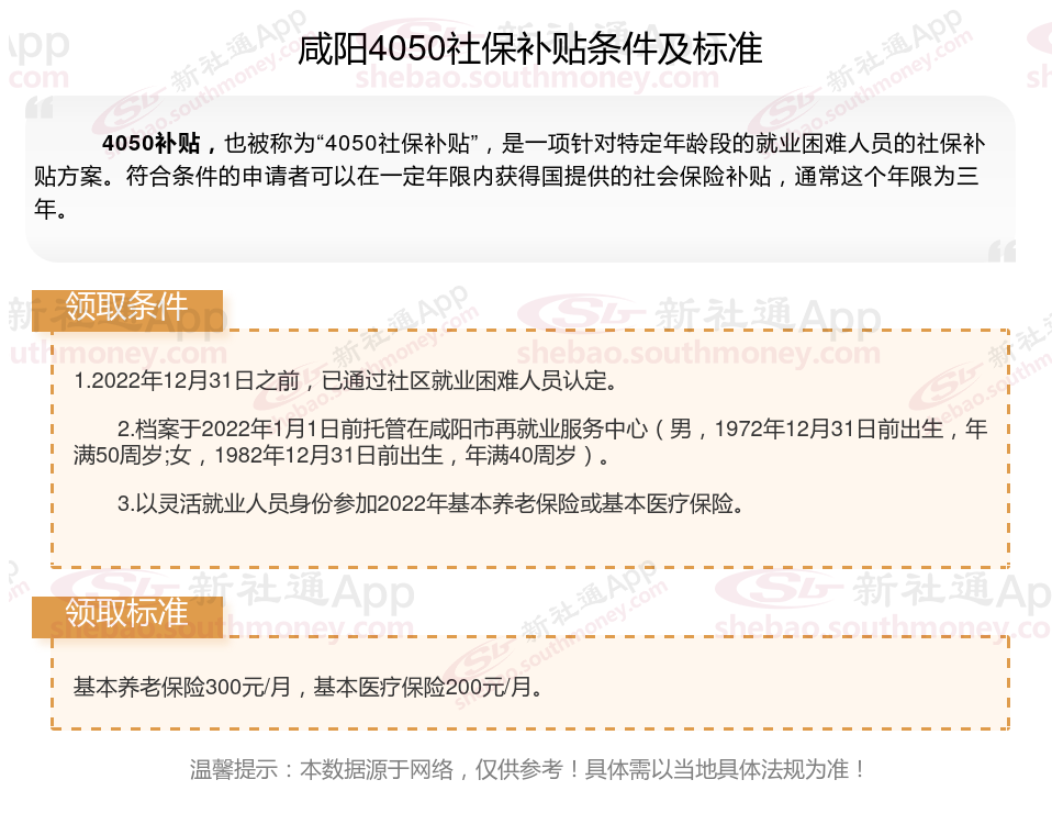 二、2023-2024年咸阳4050社保补贴标准,最新领取条件来了