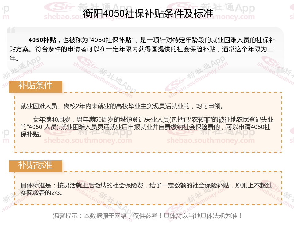 一、2023-2024年衡阳4050社保补贴标准及条件,最新如下