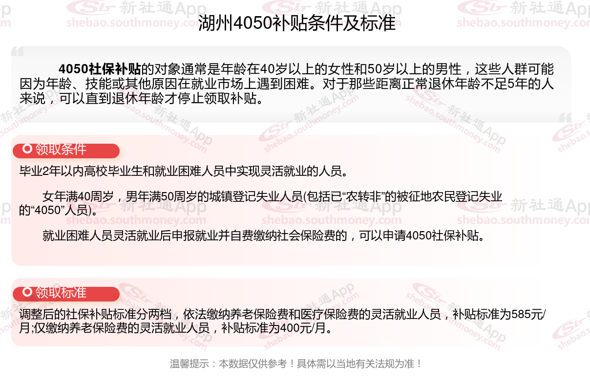 2024湖州4050补贴主要针对的是年龄在40岁以上的女性和50岁以上的男性,这些人群通常因为年龄较大而面临就业困难。