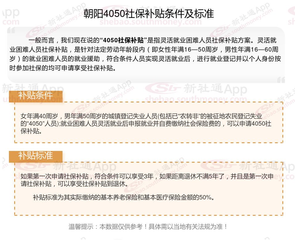 二、2023-2024年朝阳4050社保补贴标准,最新领取条件来了