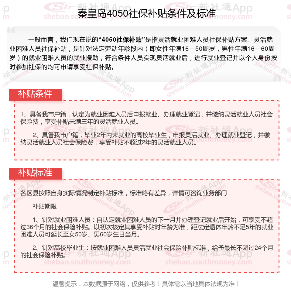 二、秦皇岛4050社保补贴标准及条件2023-2024年