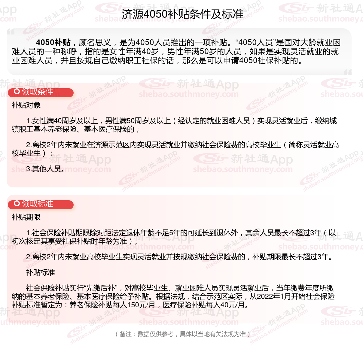 二、2023-2024年济源4050社保补贴标准,最新领取条件来了