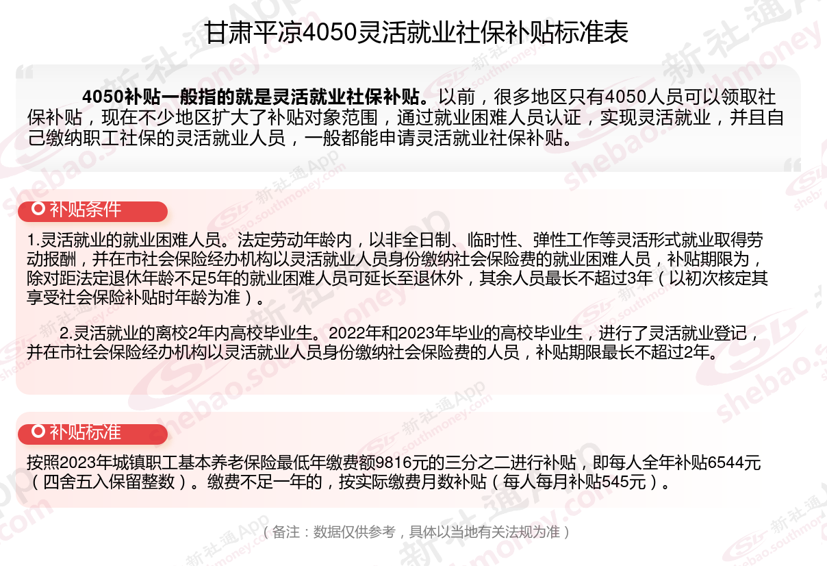 二、2023-2024年甘肃平凉4050社保补贴标准及条件