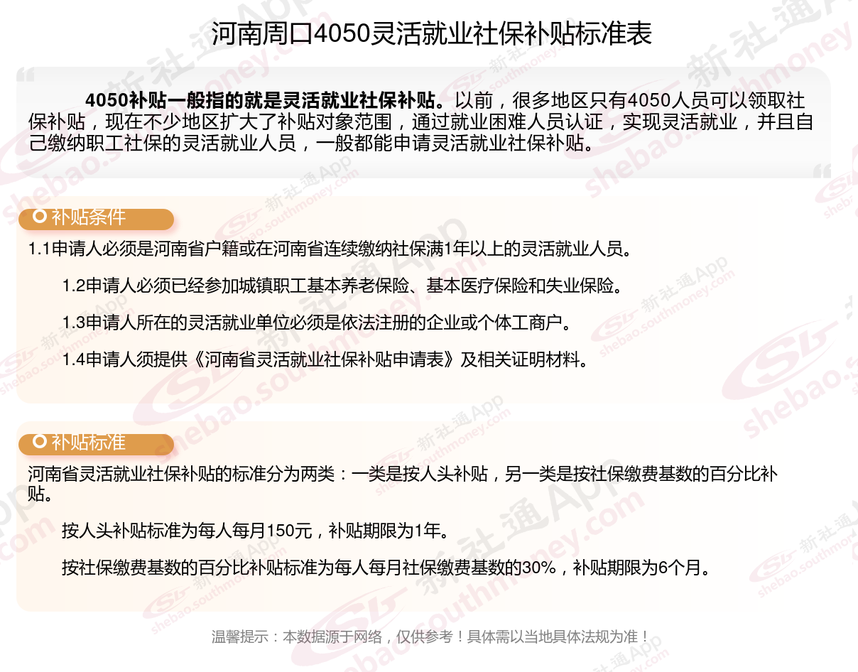 一、河南周口4050社保补贴标准及条件2023-2024年