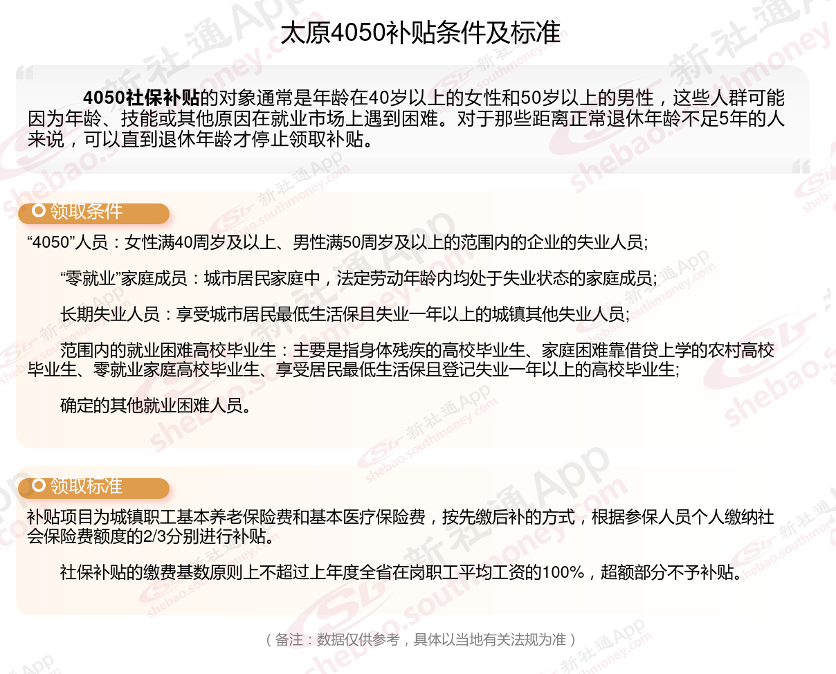 2024太原4050补贴主要针对的是年龄在40岁以上的女性和50岁以上的男性,这些人群通常因为年龄较大而面临就业困难。