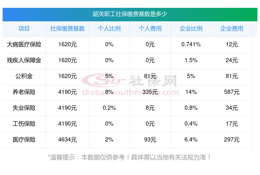 2024年韶关社保缴费多少钱?下表是2023-2024年韶关社保费用明细参考,如下: