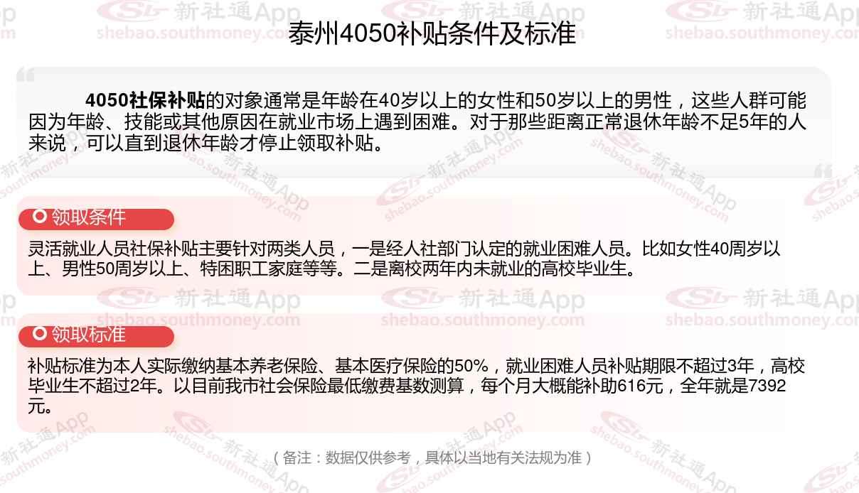 2024泰州4050补贴主要针对的是年龄在40岁以上的女性和50岁以上的男性,这些人群通常因为年龄较大而面临就业困难。