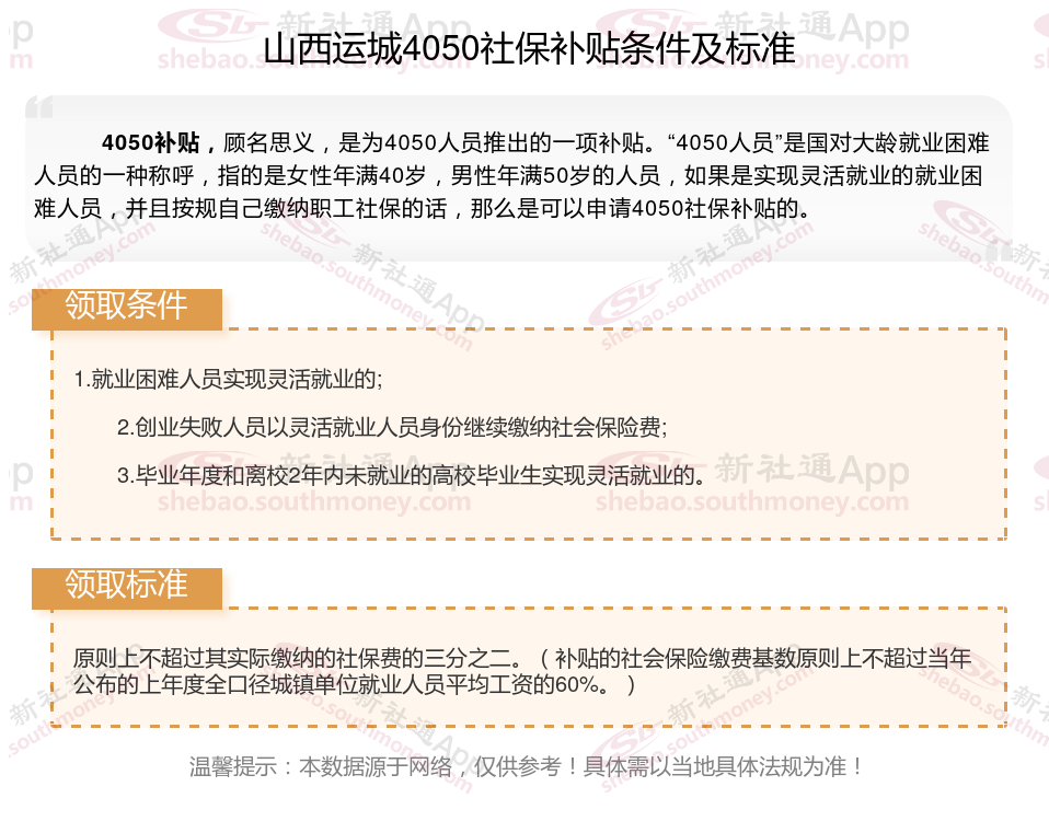 2024山西运城灵活就业4050社保补贴是一项面向特定年龄段的就业困难人群的社会保险补贴。