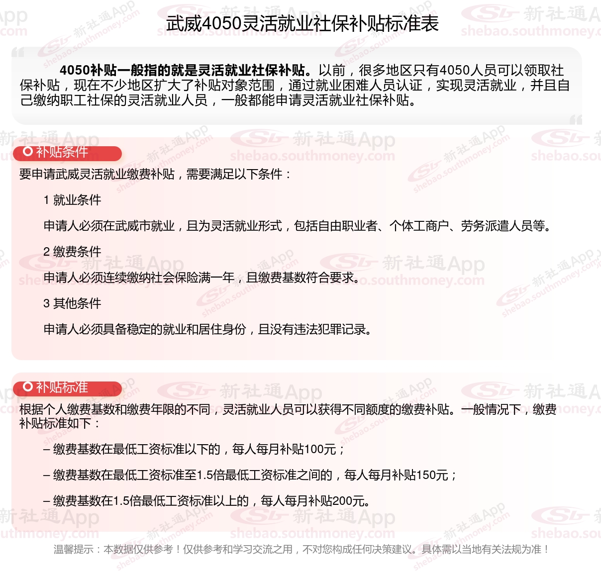 一、武威4050社保补贴标准及条件2023-2024年