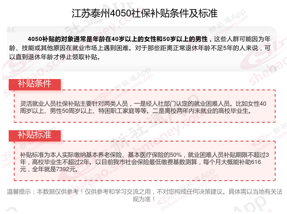 2024江苏泰州灵活就业4050社保补贴是一项面向特定年龄段的就业困难人群的社会保险补贴。