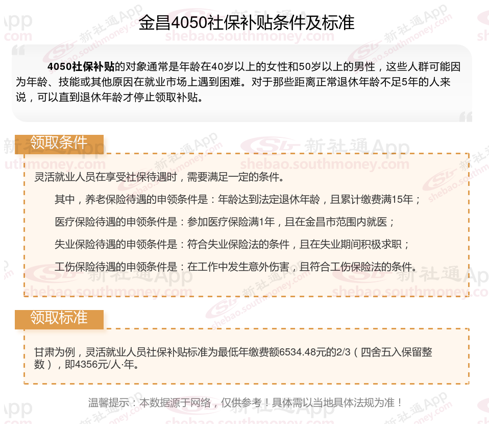 二、金昌4050社保补贴标准及条件2023-2024年