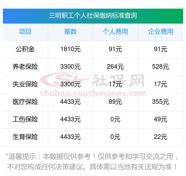 福建三明缴费社保比例一览 社保公司和个人各交多少?下表是2023-2024年福建三明社保费用明细参考,新社通app-社保缴费查询工具提供的最新数据如下: