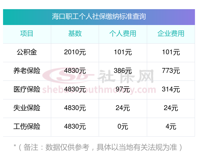 2024年海口社保缴费多少钱?下表是2023-2024年海口社保费用明细参考,新社通app-社保缴费查询工具提供的最新数据如下: