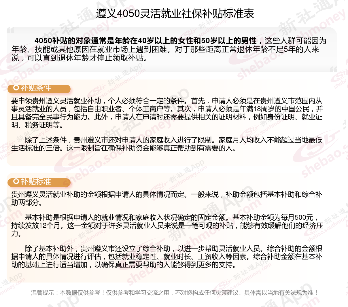 2024遵义灵活就业4050社保补贴是一项面向特定年龄段的就业困难人群的社会保险补贴。