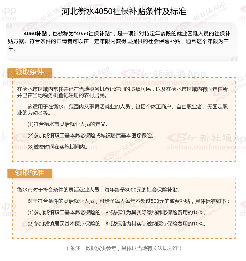 一、2023-2024年河北衡水4050社保补贴标准及条件,最新如下