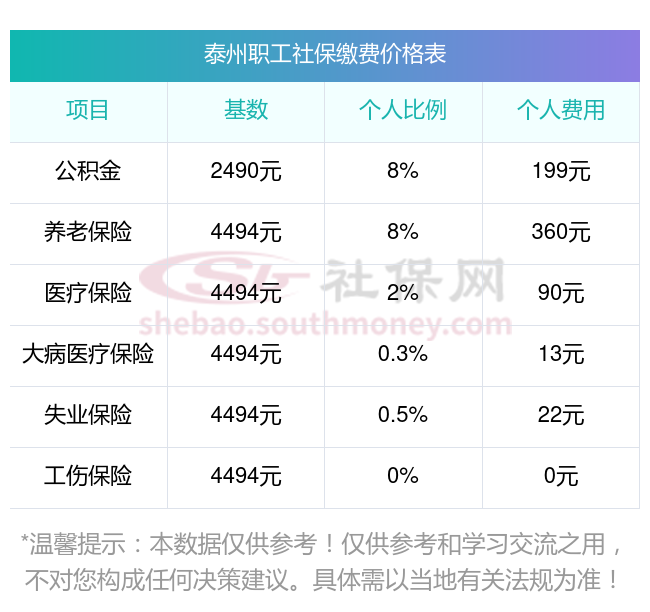2024年泰州社保缴费多少钱?下表是2023-2024年泰州社保费用明细参考,新社通app-社保缴费查询工具提供的最新数据如下: