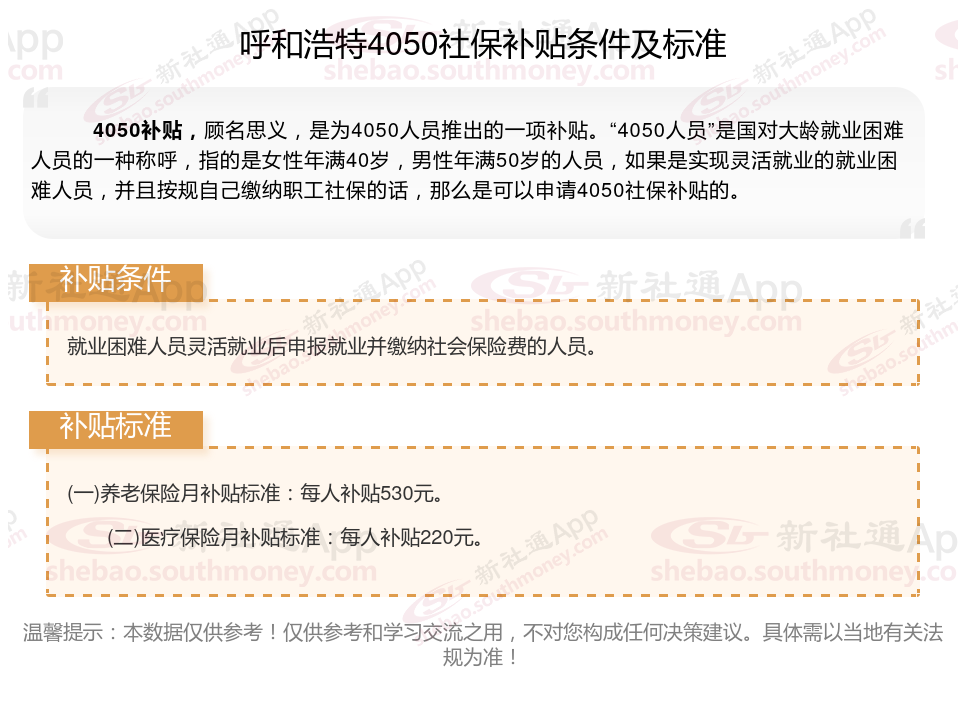二、2023-2024年呼和浩特4050社保补贴标准,最新领取条件来了