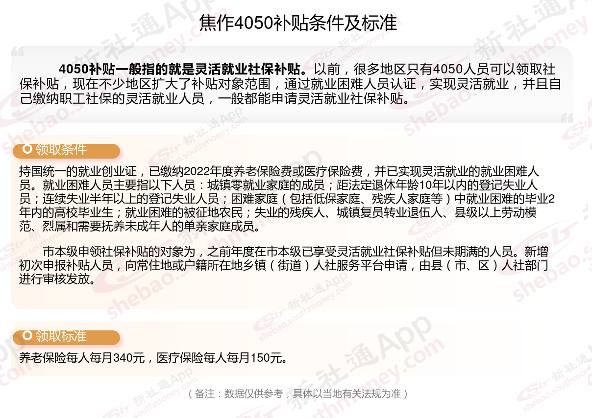 2024焦作灵活就业4050社保补贴是一项面向特定年龄段的就业困难人群的社会保险补贴。