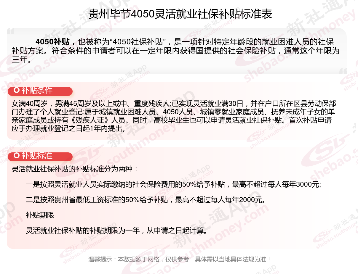一、贵州毕节4050社保补贴标准及条件2023-2024年