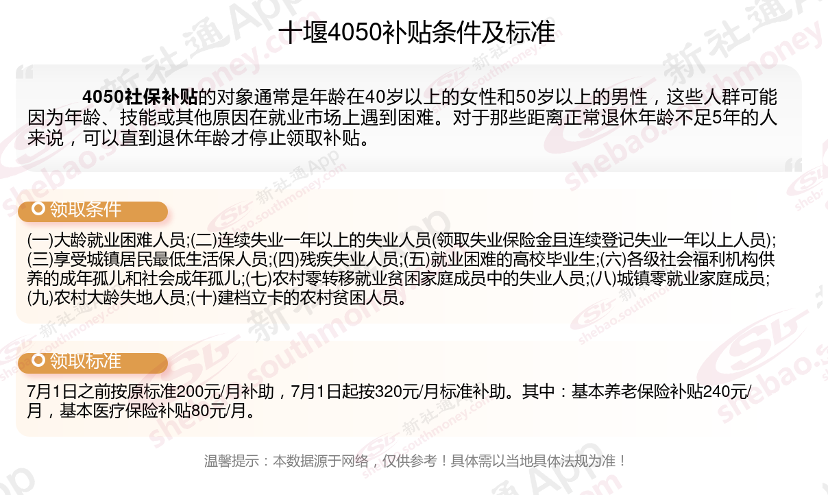 二、十堰4050社保补贴标准及条件2023-2024年,最新如下