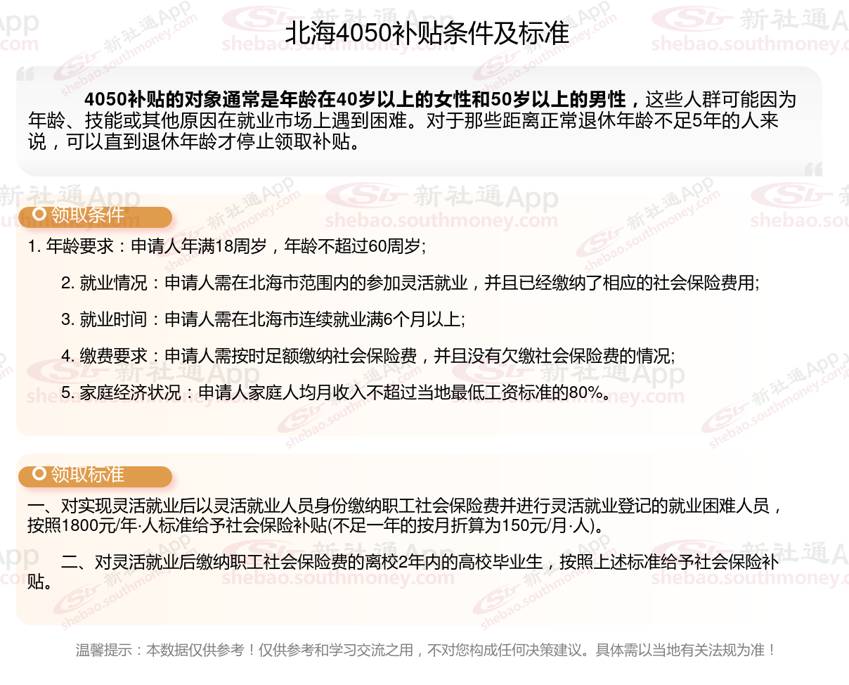 二、2023-2024年北海4050社保补贴标准,最新领取条件来了