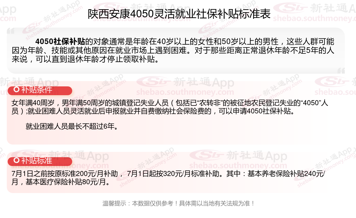 2024陕西安康4050补贴主要针对的是年龄在40岁以上的女性和50岁以上的男性,这些人群通常因为年龄较大而面临就业困难。