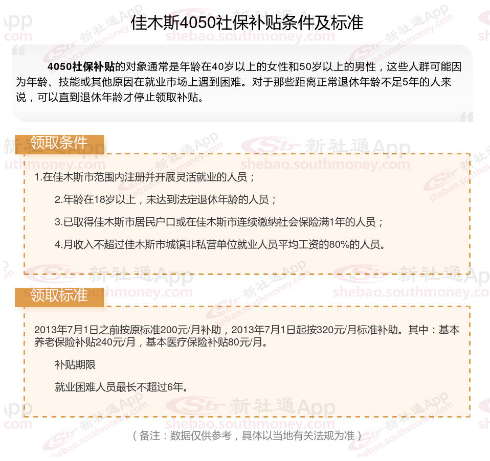 二、佳木斯4050社保补贴标准及条件,最新如下: