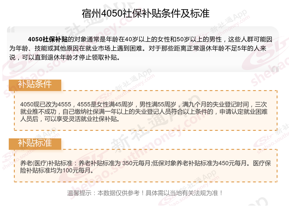 一、宿州4050社保补贴标准及条件2023-2024年