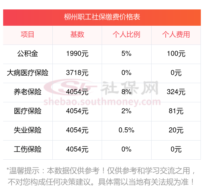 柳州社保缴纳情况是怎样的?一起和社保网一起来看看下面的明细表: