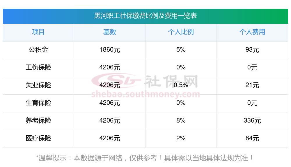 2024年黑河社保缴费多少钱?下表是2023-2024年黑河社保费用明细参考,如下: