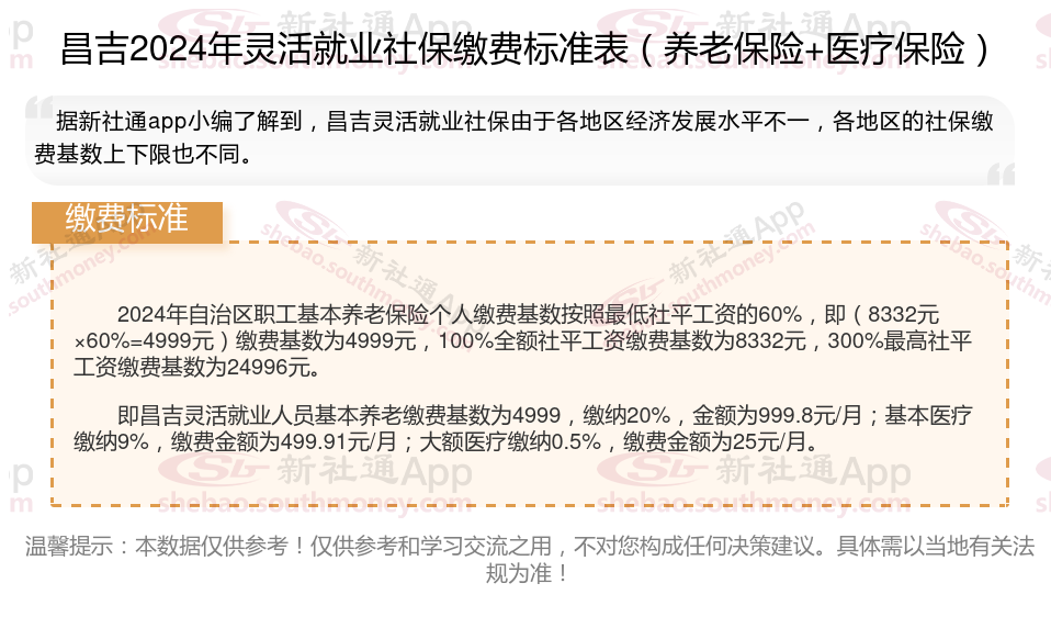 三、昌吉2024年灵活就业社保缴费基数及比例最新消息