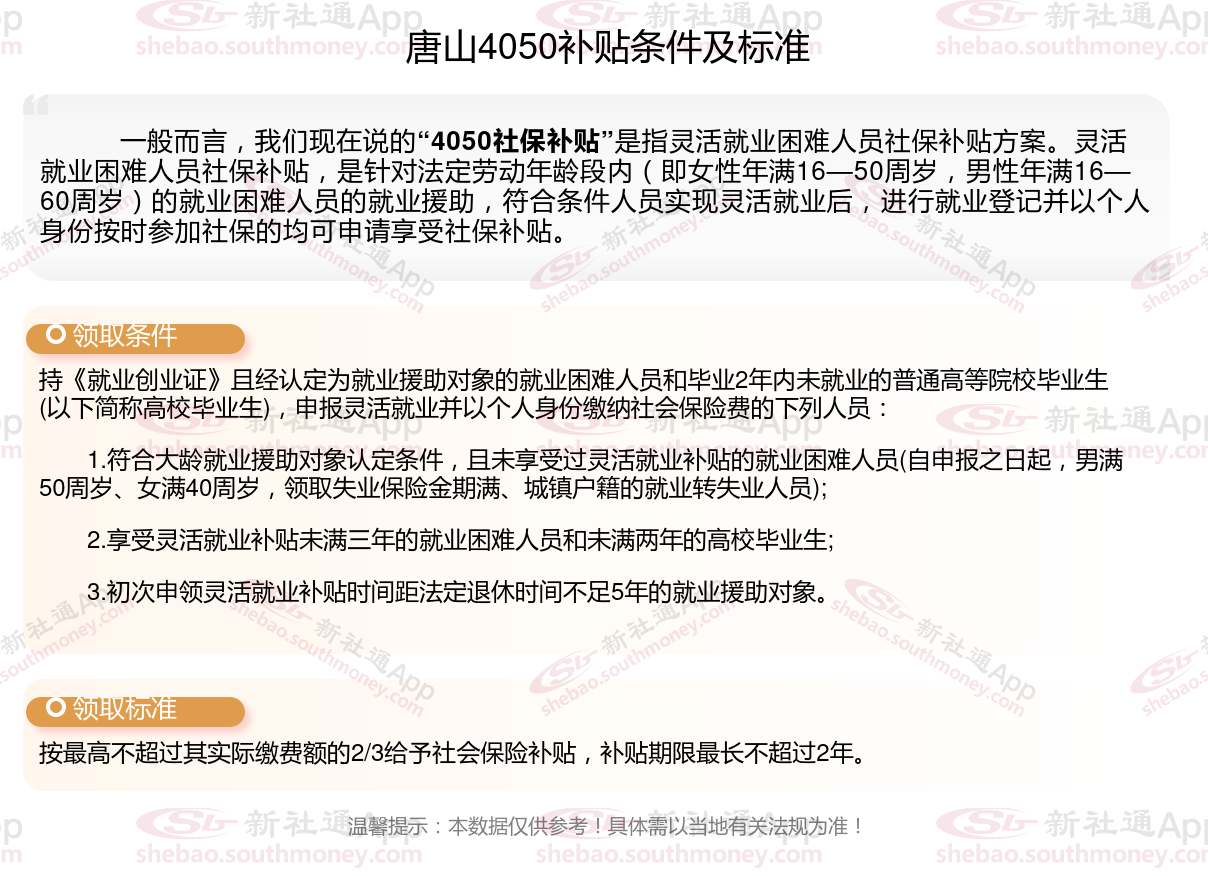 一、2023-2024年唐山4050社保补贴标准及条件,最新如下