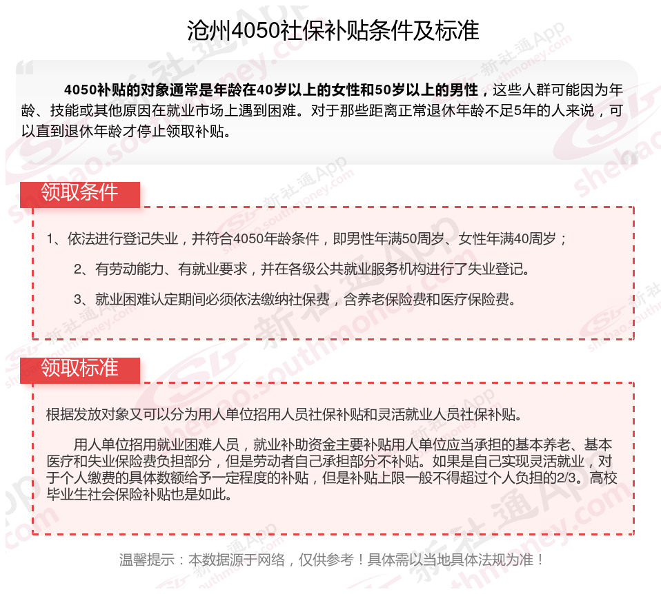 2024沧州灵活就业4050社保补贴是一项面向特定年龄段的就业困难人群的社会保险补贴。