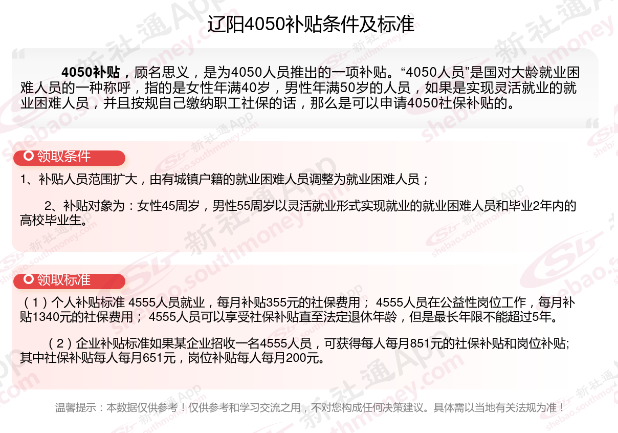 一、2023-2024年辽阳4050社保补贴标准及条件
