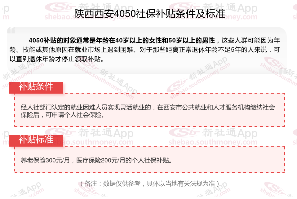 二、2023-2024年陕西西安4050社保补贴标准,最新领取条件来了