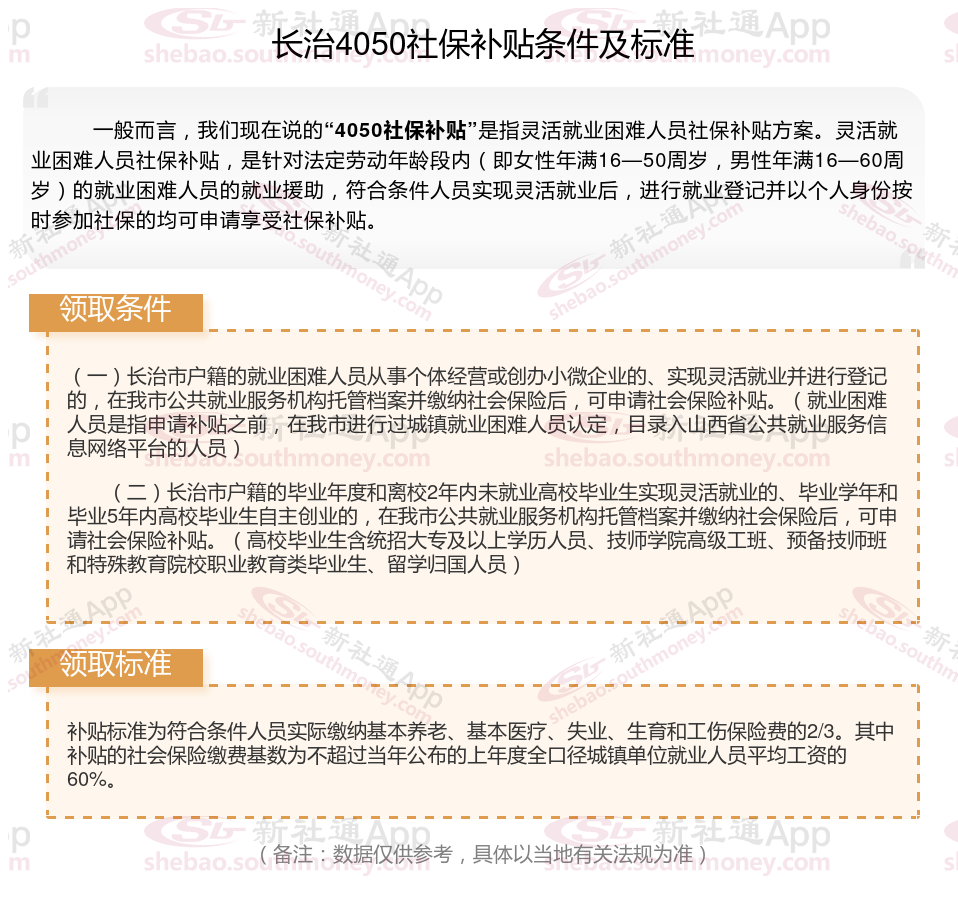 多数地区只有4050人员可以领取社保补贴,现在扩大了补贴对象及范围,通过就业困难人员认证,实现灵活就业,并且自己缴纳职工社保的灵活就业人员,一般都能申请灵活就业社保补贴。那么长治4050灵活就业社保补贴标准是多少钱?长治4050社保补贴条件是什么?接下来随新社通APP小编了解一下最新资讯。
