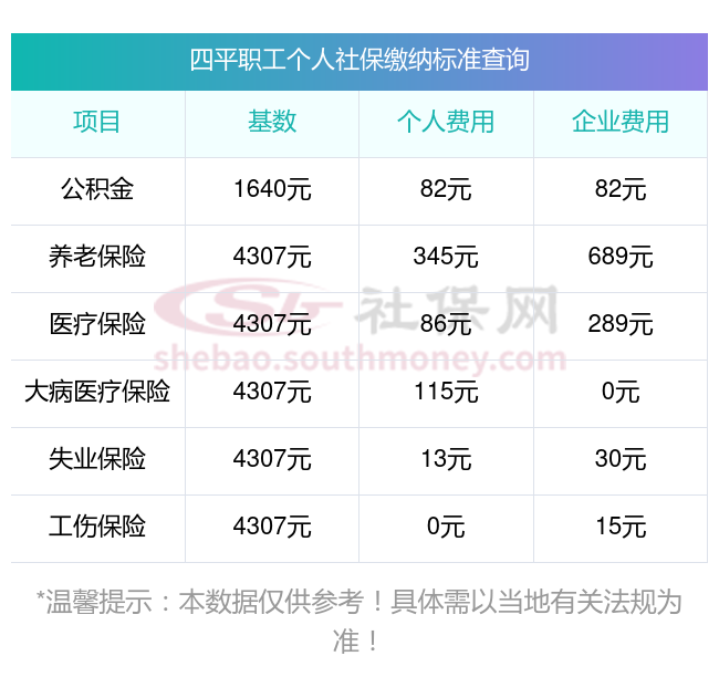 2024年四平社保缴费多少钱?下表是2023-2024年四平社保费用明细参考,新社通app-社保缴费查询工具提供的最新数据如下: